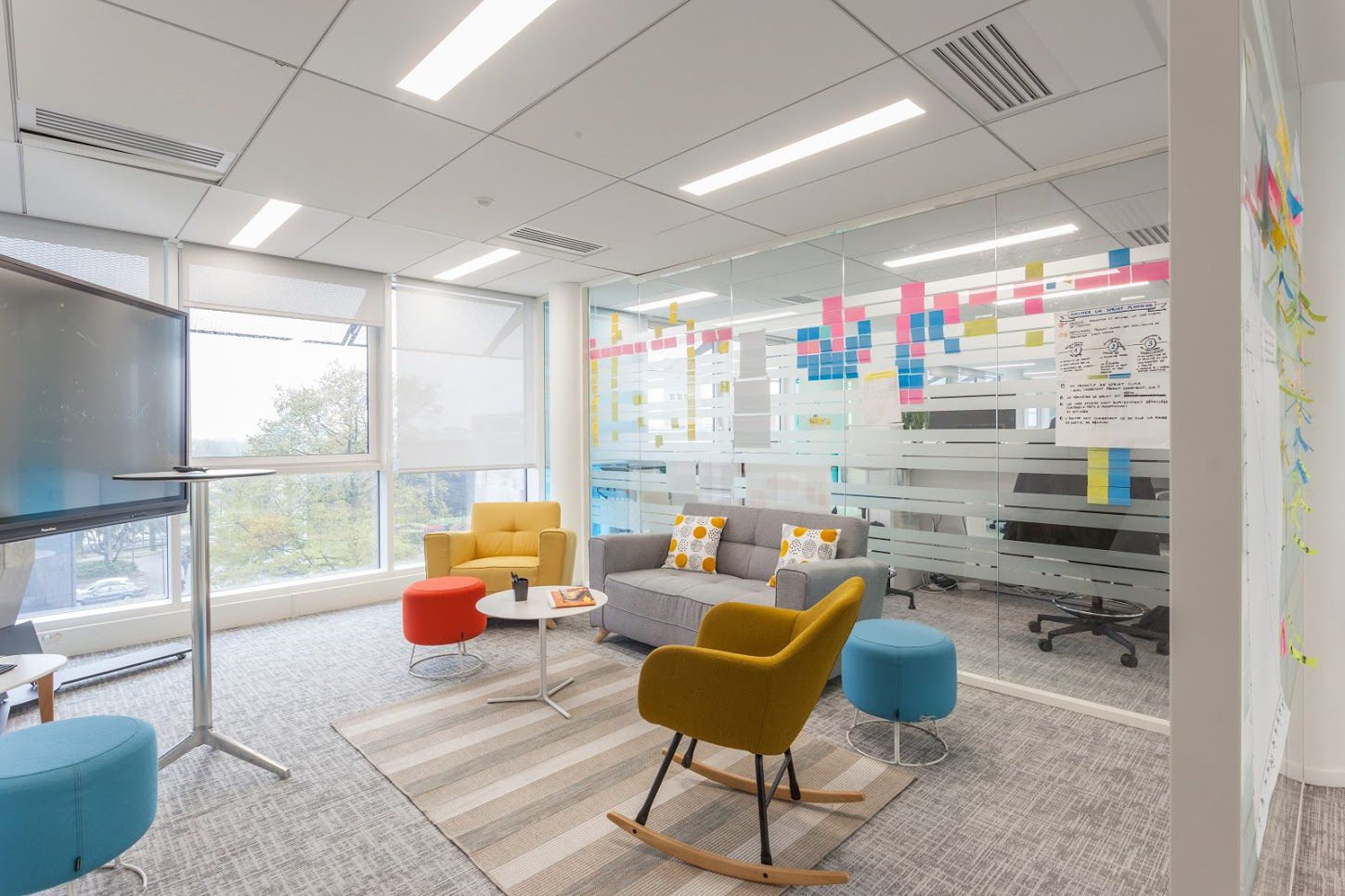 Dans un cadre à la fois apaisant, dynamique et convivial, les équipes de COLAS peuvent désormais profiter d’une pluralité d’espaces à leur disposition. Les bureaux sont ouverts et de nombreux espaces pour s’isoler ou se réunir ont été mis en place : des salles de réunions de toute taille, des cabines de travail entièrement isolées, des alcôves comprenant des connectiques, mais aussi des zones de brainstorming ou de détente.