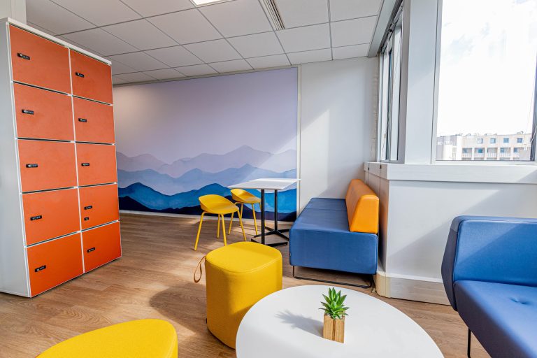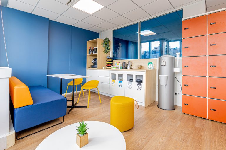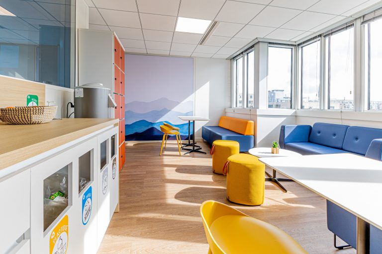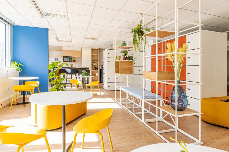 Ce nouvel aménagement faisant suite à un nouveau plateau pris à bail, l’objectif était également de créer un espace ou l’ensemble des collaborateurs peuvent se retrouver à tout moment.